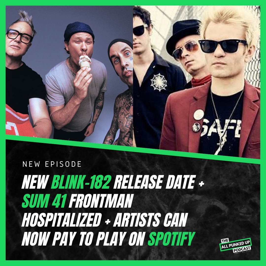 ICYMI: New blink-182 release date + Sum 41 frontman hospitalized + Artists can now pay to play on Spotify