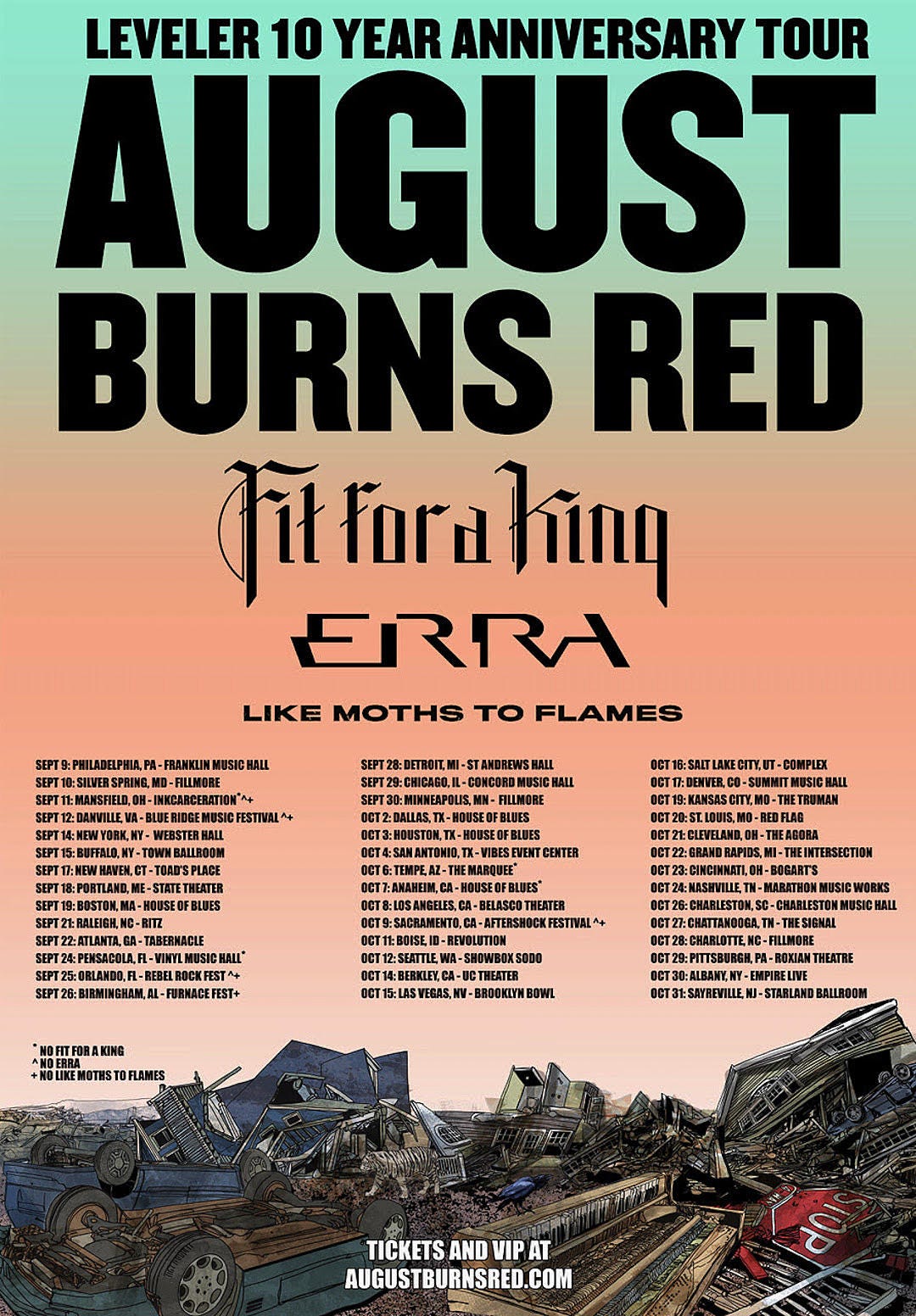 August Burns Red made their way to Chicago's Concord Music Hall on September 29th. With a loaded lineup for a huge tour, The 'Leveler' 10 year anniversary tour included, of course, August Burns Red with openers Like Moths to Flames, ERRA, and Fit For A King. Every performance that hit the stage was high energy, loud, exciting, rowdy, and extremely fun. It's genuinely so exciting and heartwarming to see live music make a return with shows like these. Check out the photo series below of all these outstanding acts!